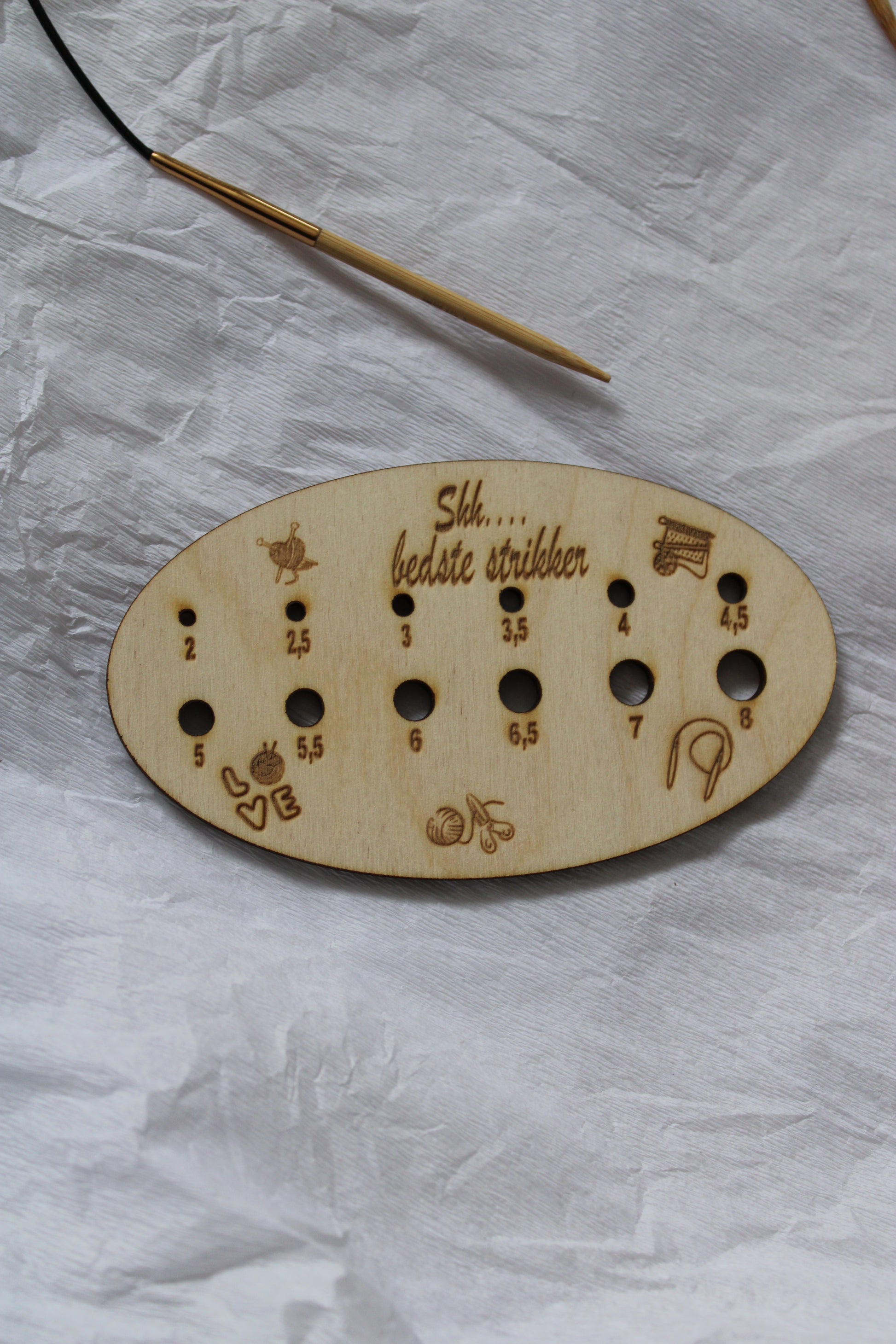 "Shh.... bedste strikker" pindemåler.