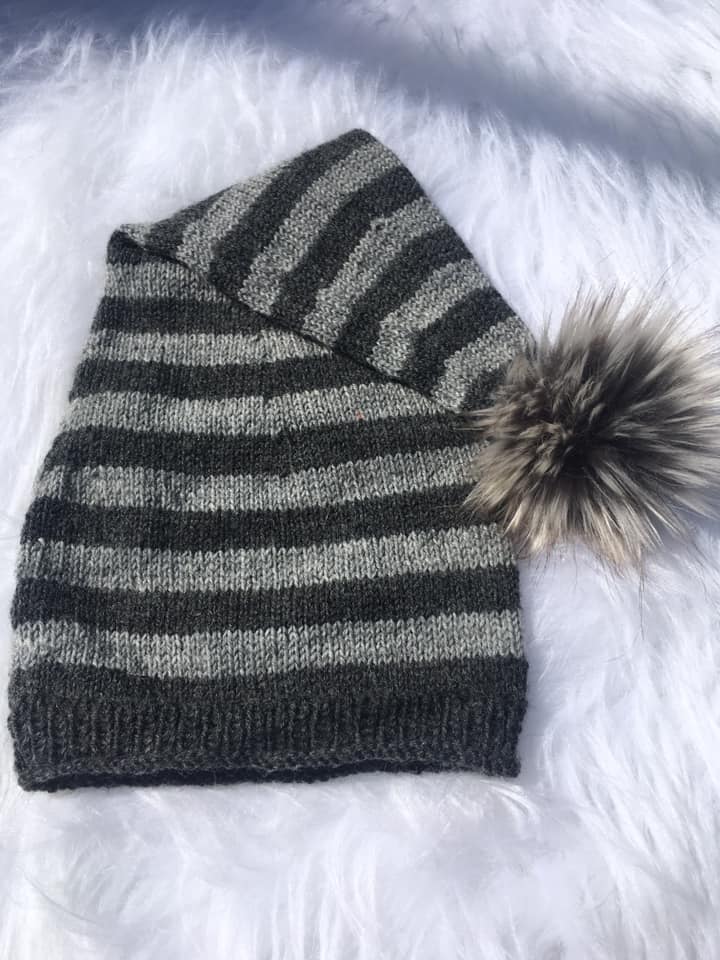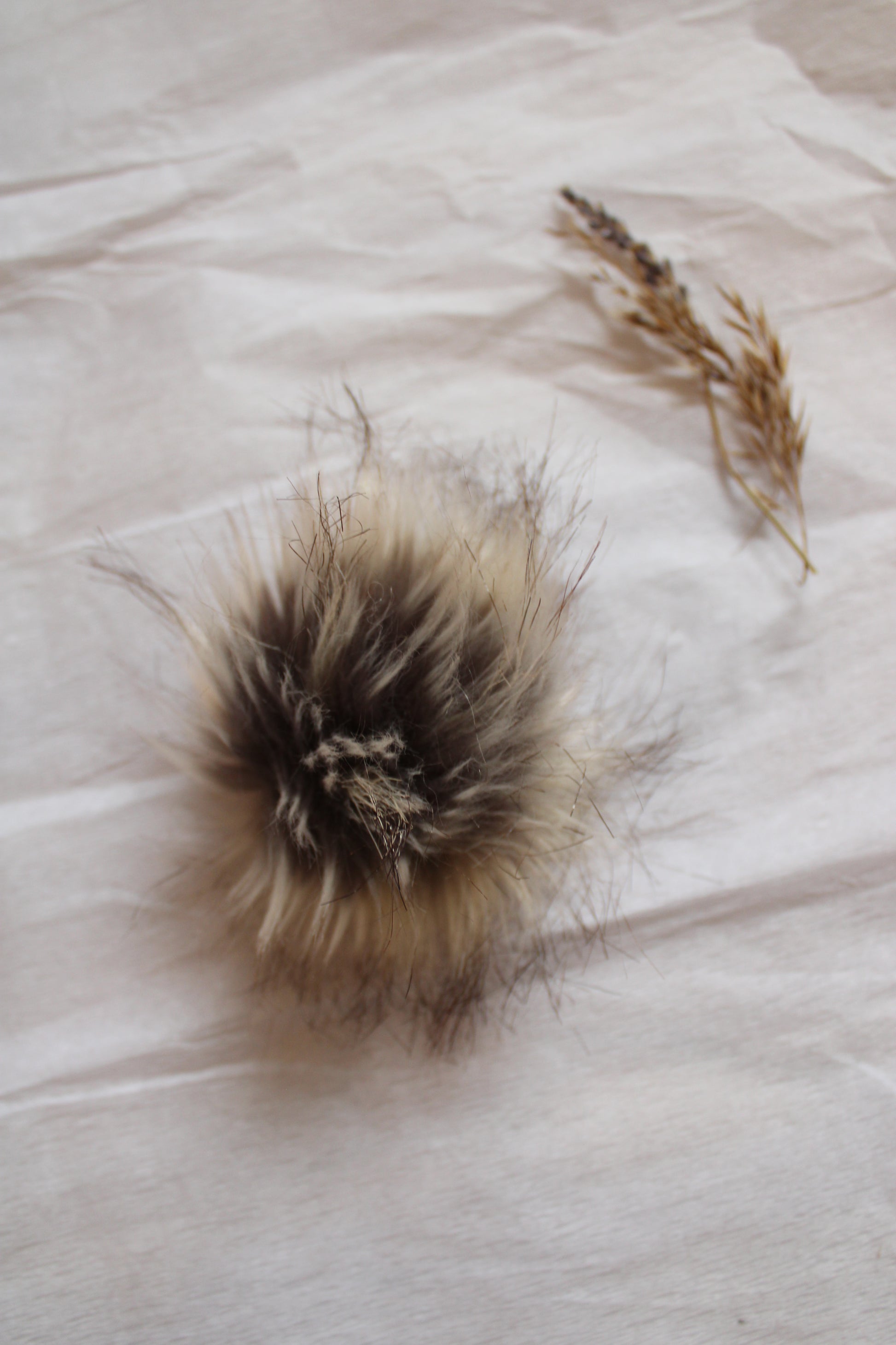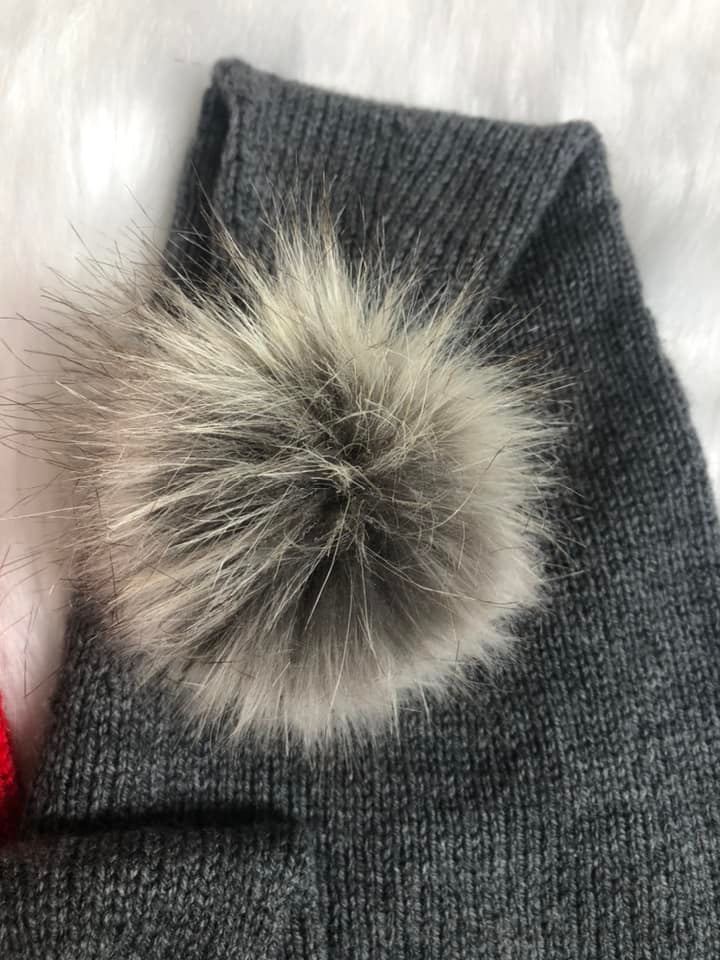 Den populære grå kvast, til bl.a. nissehuer, i størrelsen 10-12 cm håndsyet i fake fur.