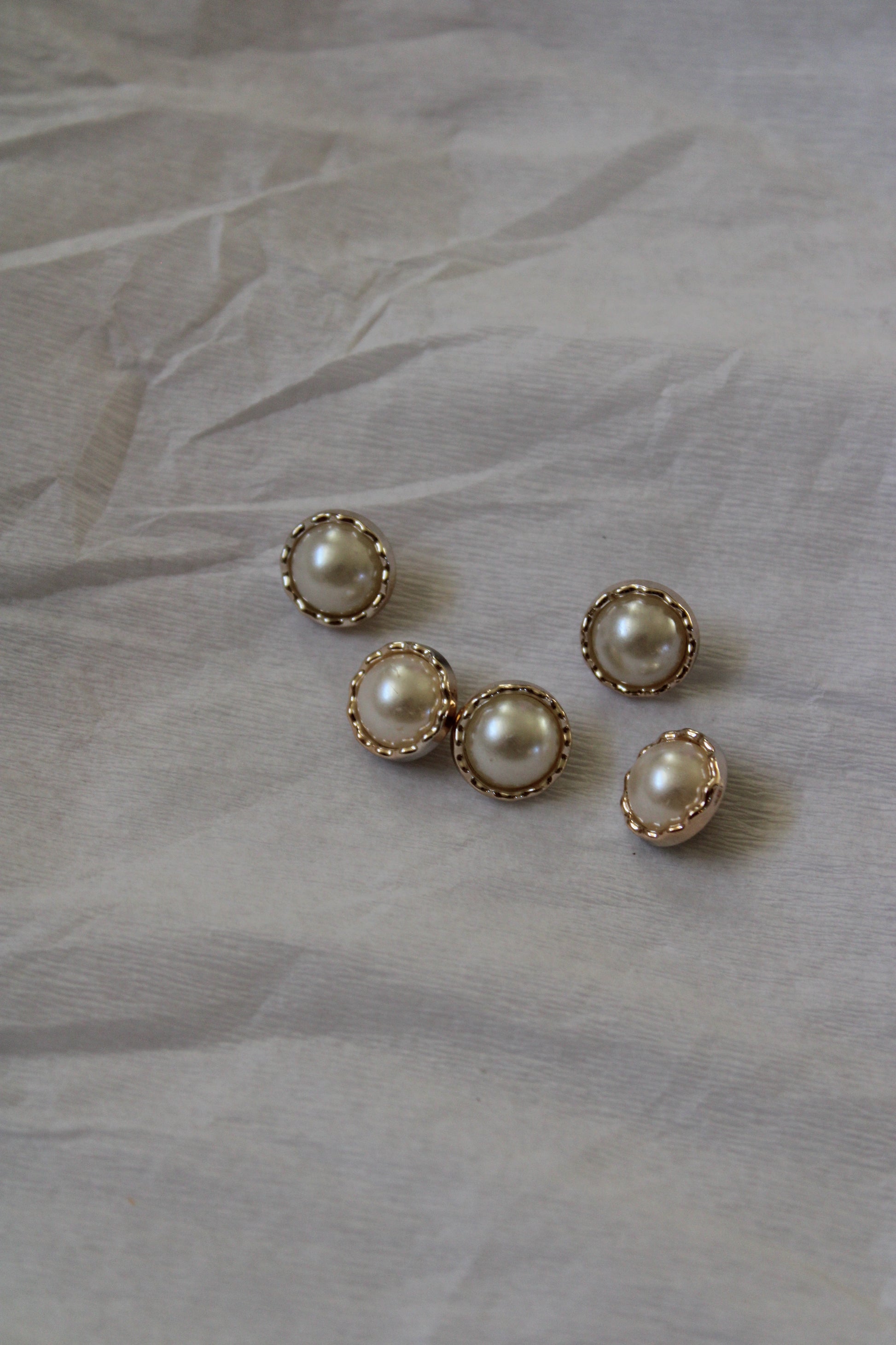 Knappen har en bølgekant, og med perlen i midten er knappen virkelig elegant. Knappen har ét øje bagpå, der gør den nem at påsætte dit næste projekt.