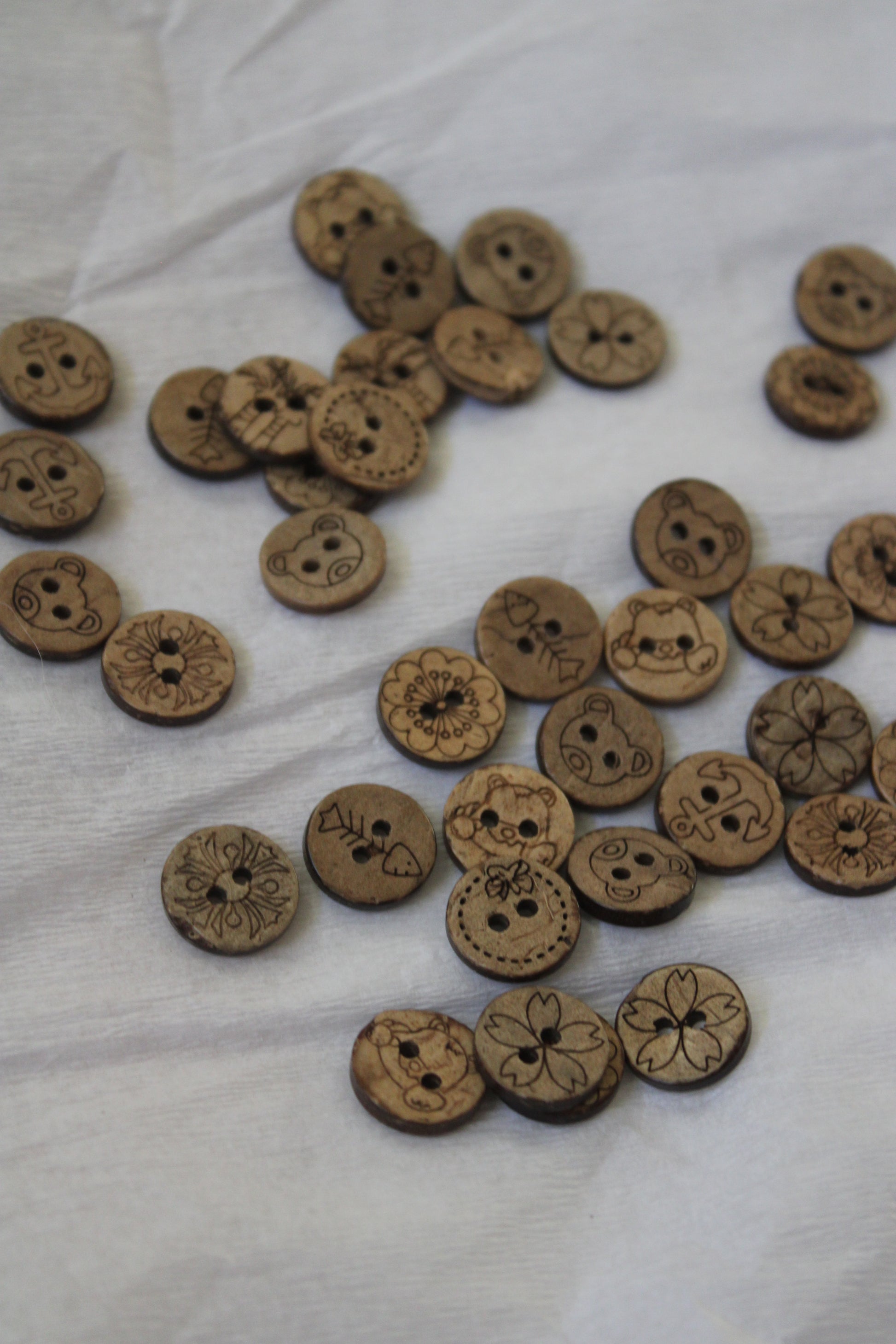 Træ-knapper med de sødeste motiver, til dit næste krea-projekt.