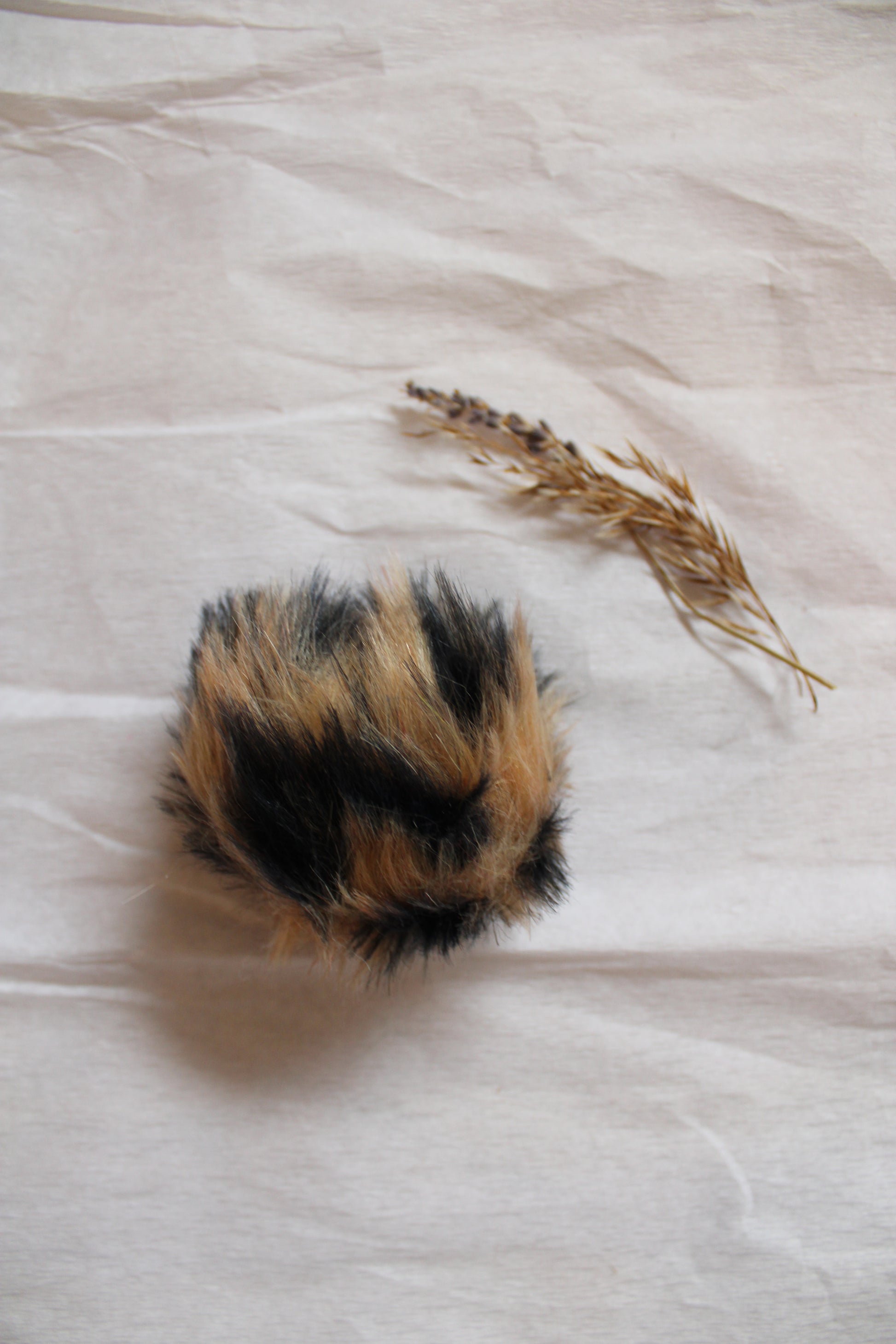 Leopard kvast i kort fake fur i størrelsen 10-12 cm.