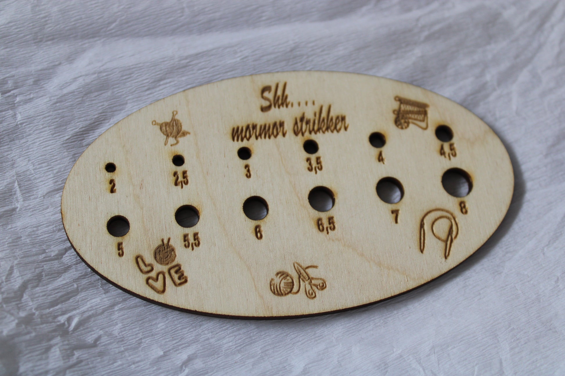 "Shh.... mormor strikker" pindemåler.