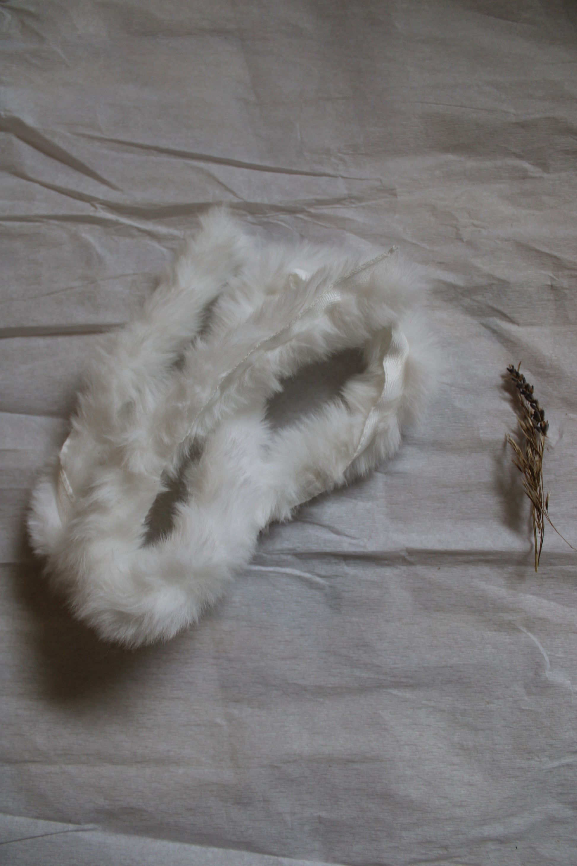 Hvid pelskant i fake fur, der måler 100 cm pr. stk.