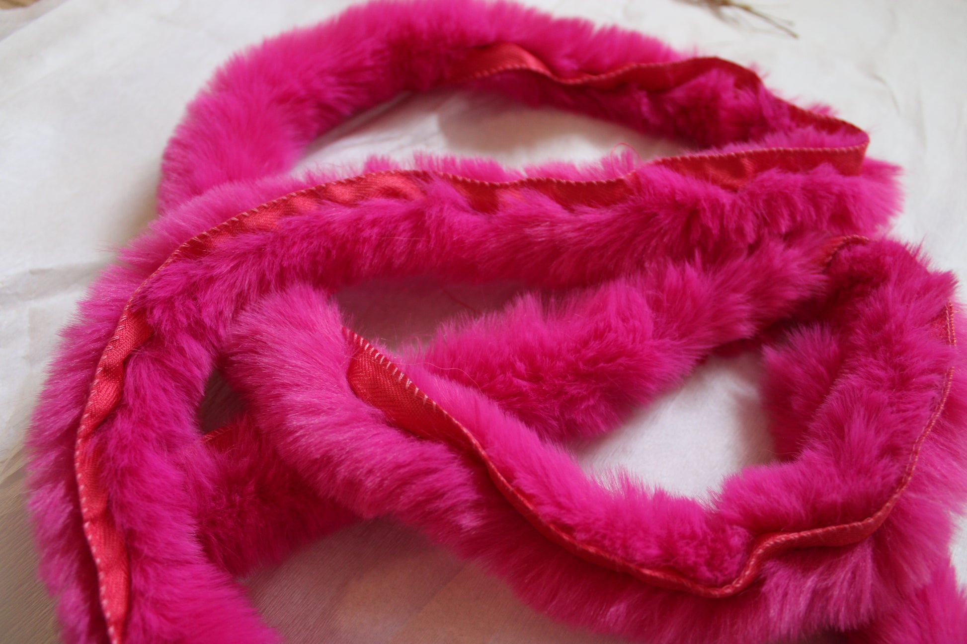 Pink pelskant i fake fur, der måler 170 cm pr. stk.