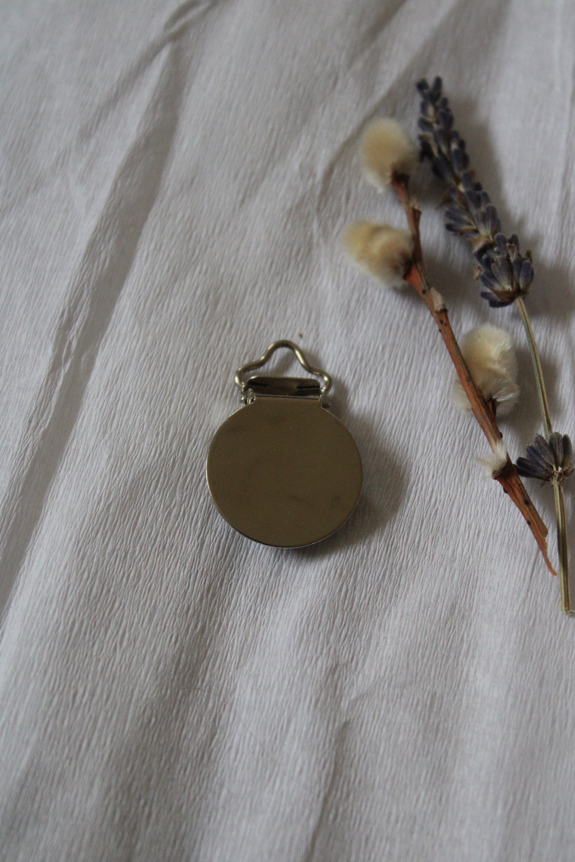 Blank rund seleklips/sutteklips. Kan bruges til f.eks. suttesnor.