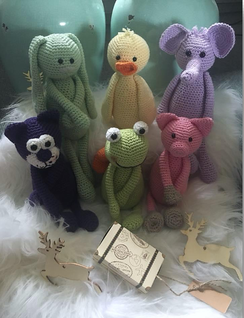 Du får opskrift på hele 6 bamser; elefant, gris, kanin, kat, frø, and.