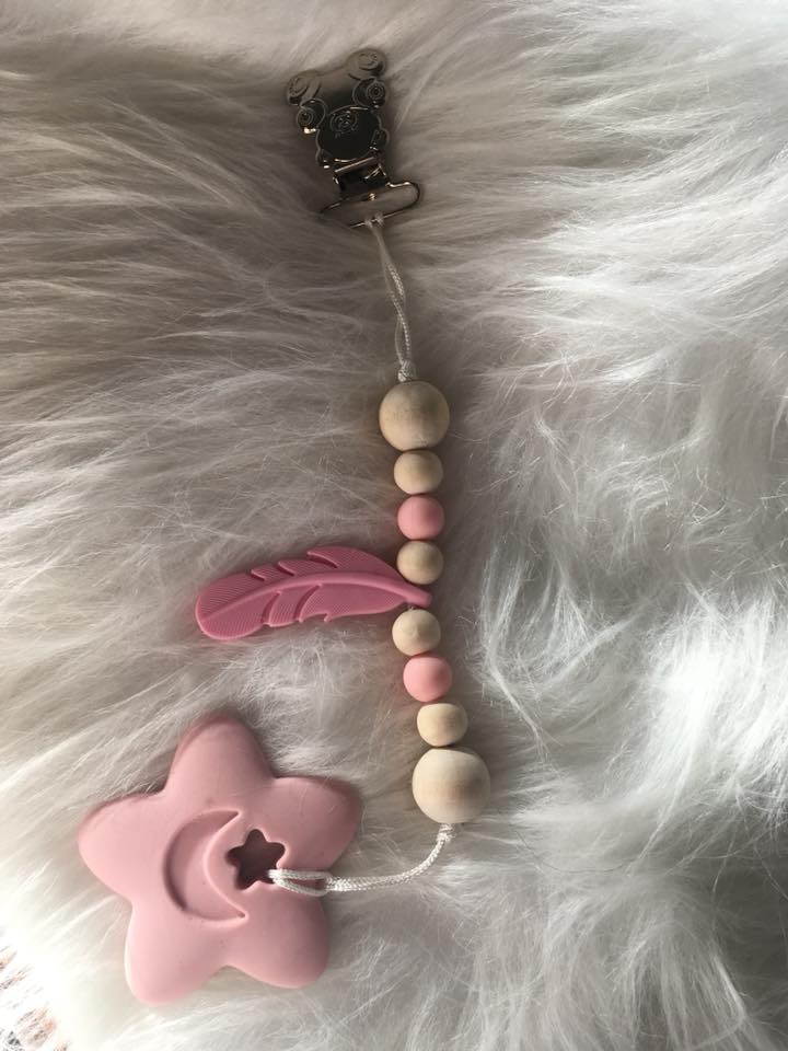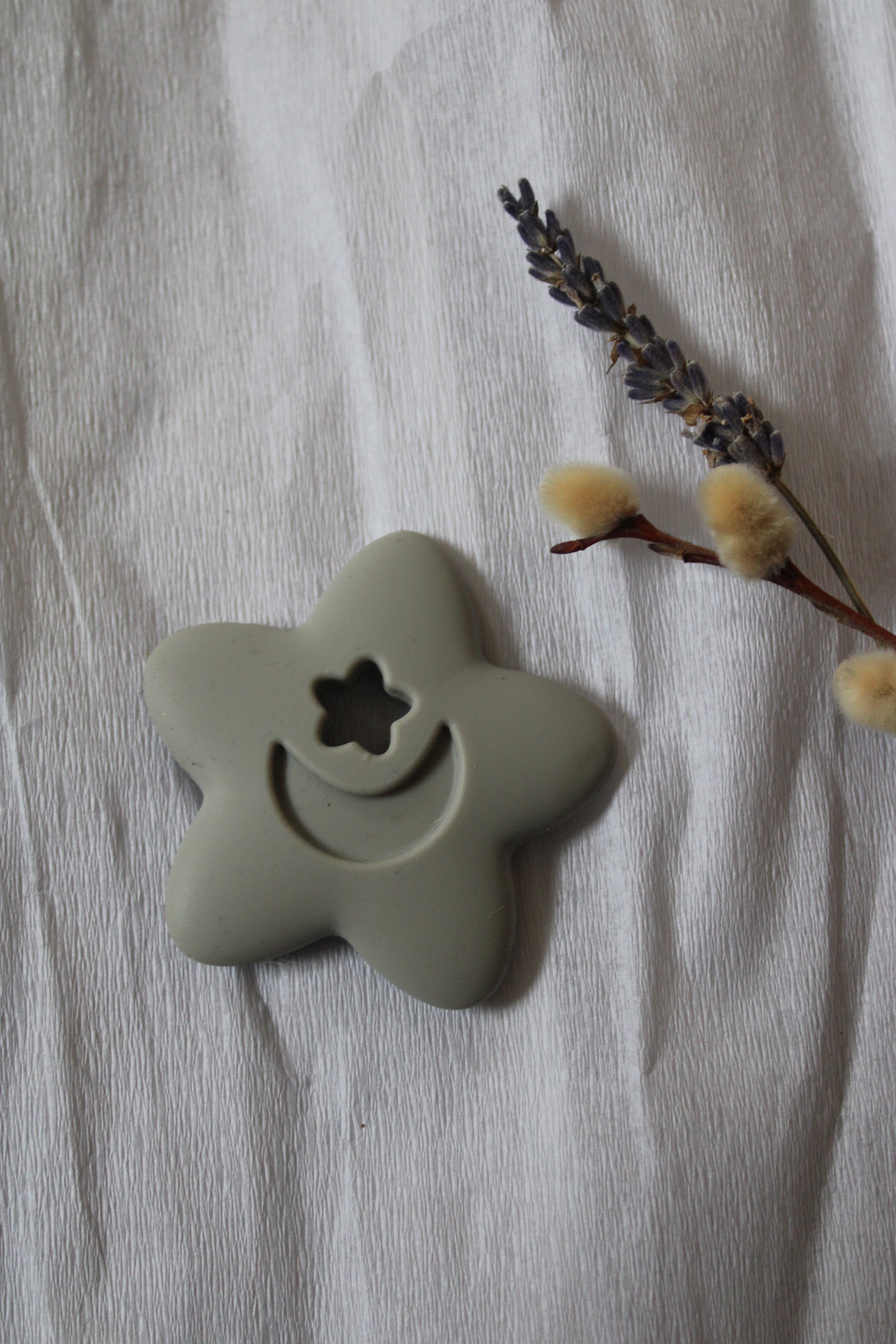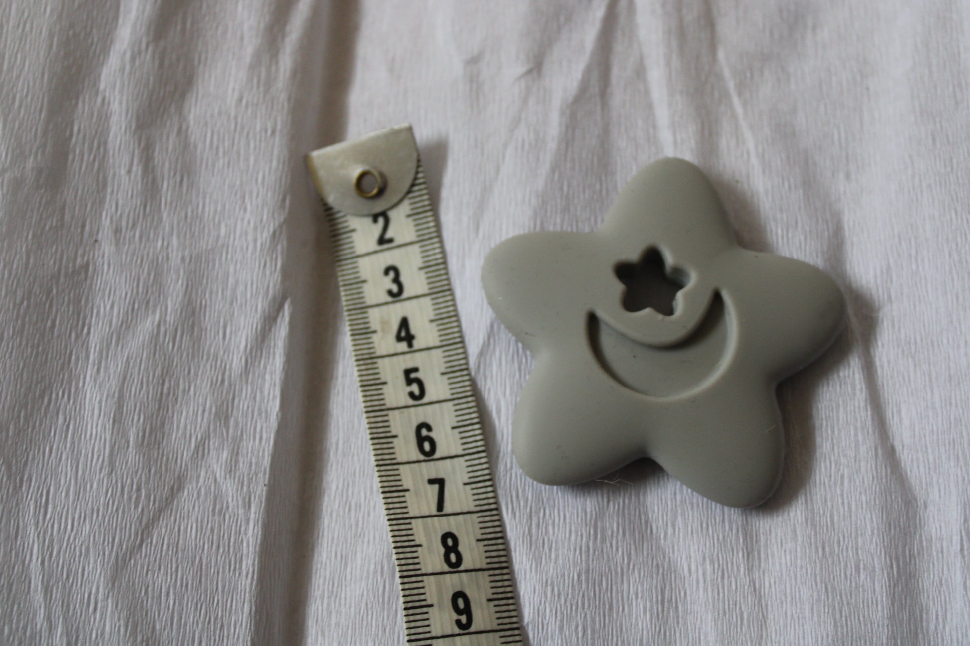 Grå stjerne bidering. Kan bruges til f.eks. suttesnor, uroer eller rangler.